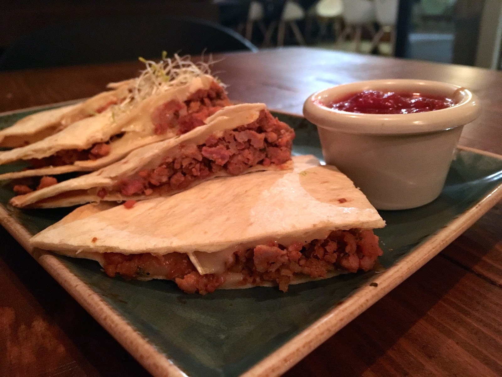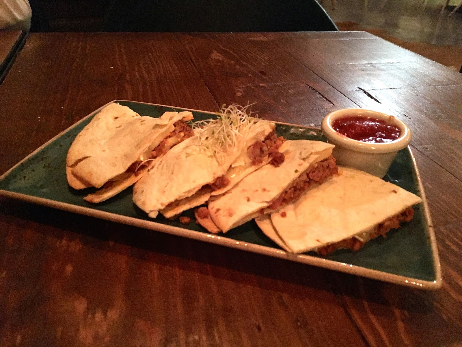 Al final, tras mucho seleccionar y des-seleccionar, nos decantamos por boletus salteados con huevo y trufa para compartir, quesadilla de picadillo Ibérico fundida con Brie y tartar de aguacate con salmón. De postre, helado de dulce de leche.