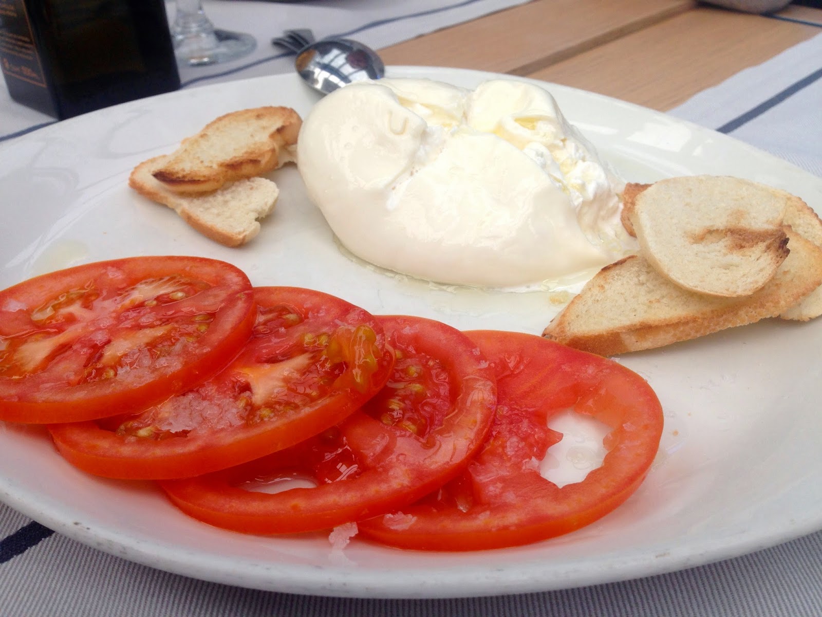 La burrata nos encanta, la pedimos siempre. Huele mucho mucho a trufa y luego no sabe tanto, es suave y siempre deja con ganas de más. Yo nunca la mezclo con pan, pero sí con tomate y un chorrito de aceite. Me encanta. También tienen burrata al pesto, estoy segura de que también está buenísima. Habría que probarla.