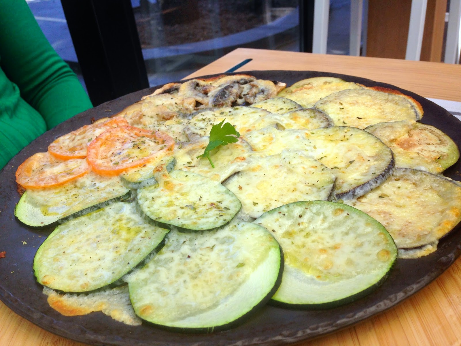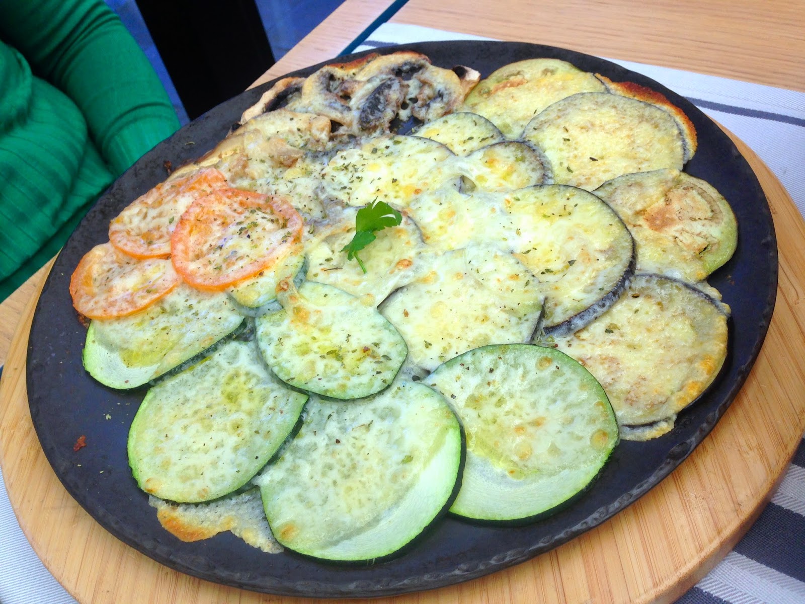 Las verduras laminadas al horno con provolone estaban buenas, pero el queso no era provolone. Que no pasa nada, pero no era provolone. A nuestro gusto les faltaba un poco de sabor, como darles alguna gracia con pimienta o algo. Pero estaban buenas, y es un plato que tiene mucho aspecto de sano.