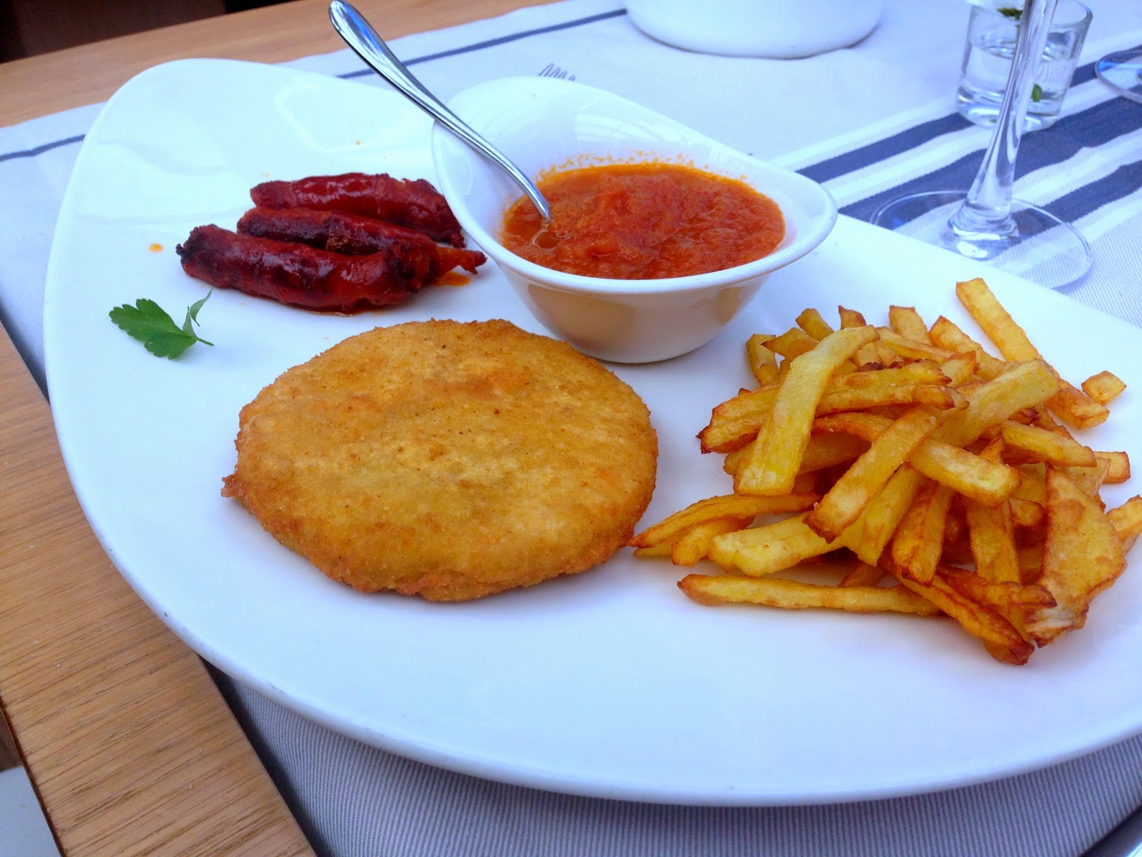 No me gusta la gente que pide ensalada en los restaurantes. Todas las ensaladas son prácticamente iguales, pero ese día fui yo la que la pidió porque tenía el estómago completamente cerrado. Mi primera impresión fue que era una ensalada preciosa. Muy colorida y apetecible, y la realidad es que es una ensalada muy típica, que está buena, pero no es para tirar cohetes. Yo creo que deberían trabajar más el aliño, le quedaría muy bien una crema de yogur o una salsa de mostaza y miel, o por lo menos un vinagre balsámico en crema, no líquido. Oye, pero está buena.