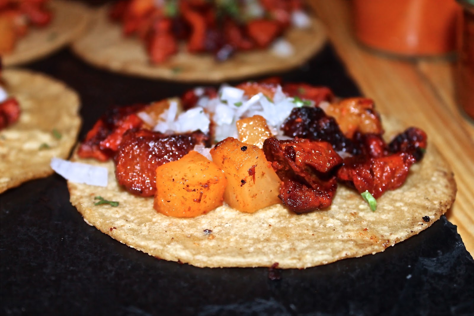 y los tacos al pastor, que son de cerdo adobado. Estaban sensacionales.