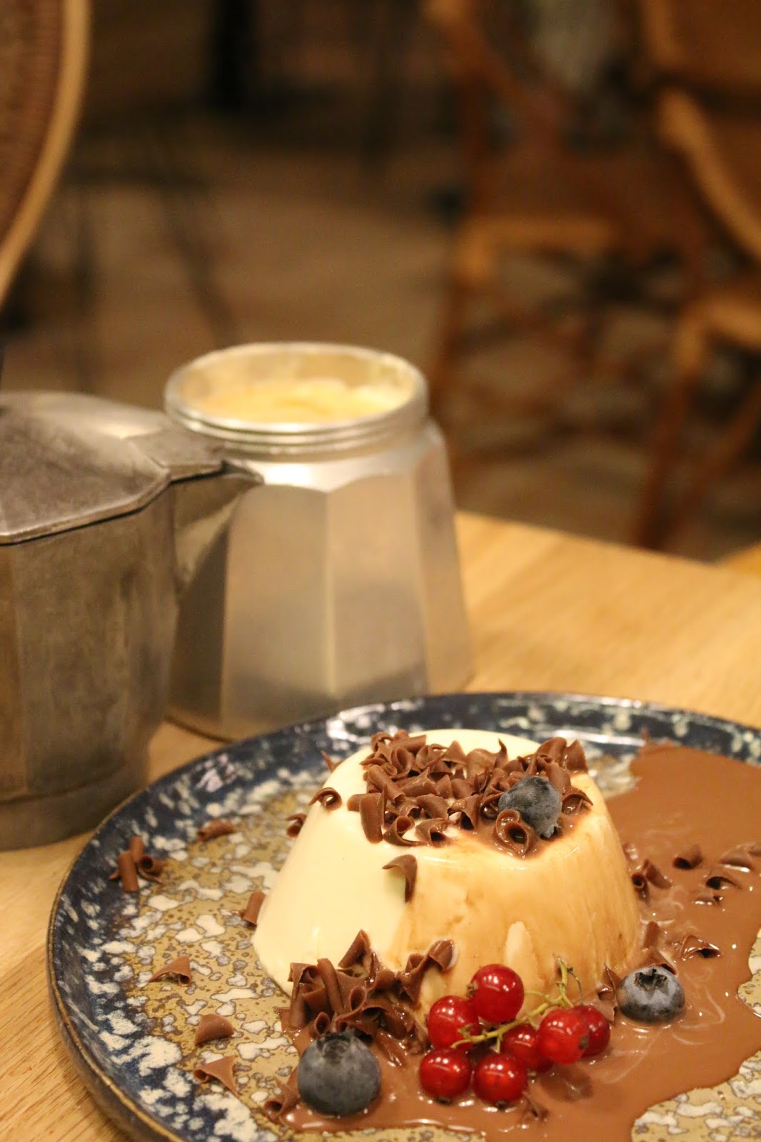 De postre nos sorprendieron primero con el tiramisú, evidentemente, no podía faltar en un restaurante italiano. Segundo, con pannacotta con chocolate, de los postres más fotogénicos que he visto (los que nos dedicamos a salir a comer creemos que los platos son como las personas: fotogénicos o no).