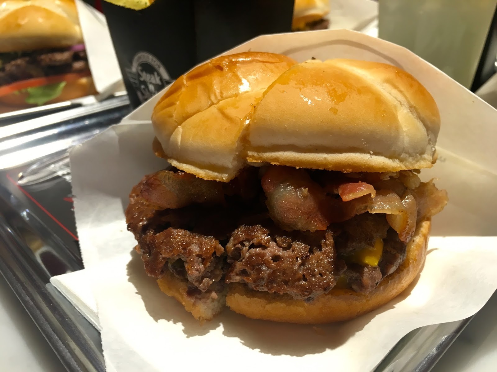 Nos sorprendieron con cuatro hamburguesas – grilled mushrooms ‘n swiss, guacamole, western bbq’n bacon y jalapeño crunch -, cuatro tipos de patatas fritas – con queso cheddar y bacon, sal y vinagre, especias italianas y sal y pimienta – y de postre, una degustación de shakes. Son súper auténticos. Aunque en las fotos los vais a ver en vasitos, luego pedimos uno en tamaño real y era gigantesco, como vais a ver más abajo.