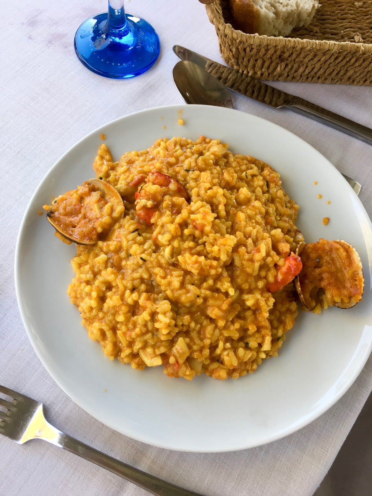 Como principales, hamburguesa de buey “para comer con las manos”; penne con colmenillas y crema de trufa, arroz caldoso de carabinero para dos, y una tabla mixta ibérica con secreto, pluma y presa. Si bien es cierto que no pudimos con el postre, yo no dejé pasar la amplia oferta de infusiones y pedí una de menta.
