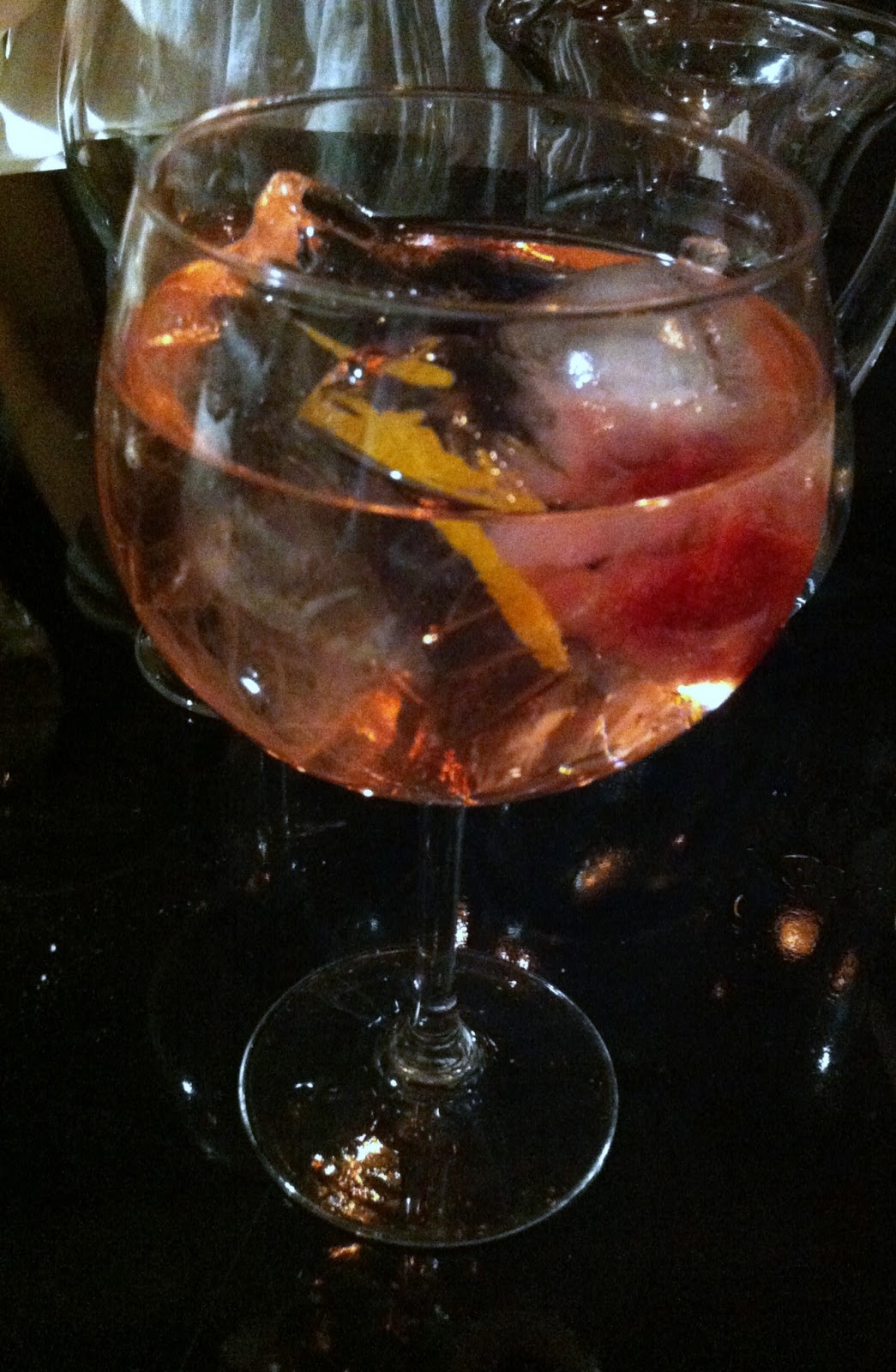 Nos gustó tanto el sitio, el servicio y la comida que decidimos tomarnos una copa para disfrutar un poco más del lugar. El gintonic estaba muy bueno. El toque original lo pone la bola de hielo del tamaño de una de bola grande de helado con un arándano y una frambuesa dentro, consiguiendo así el efecto de color en la copa.