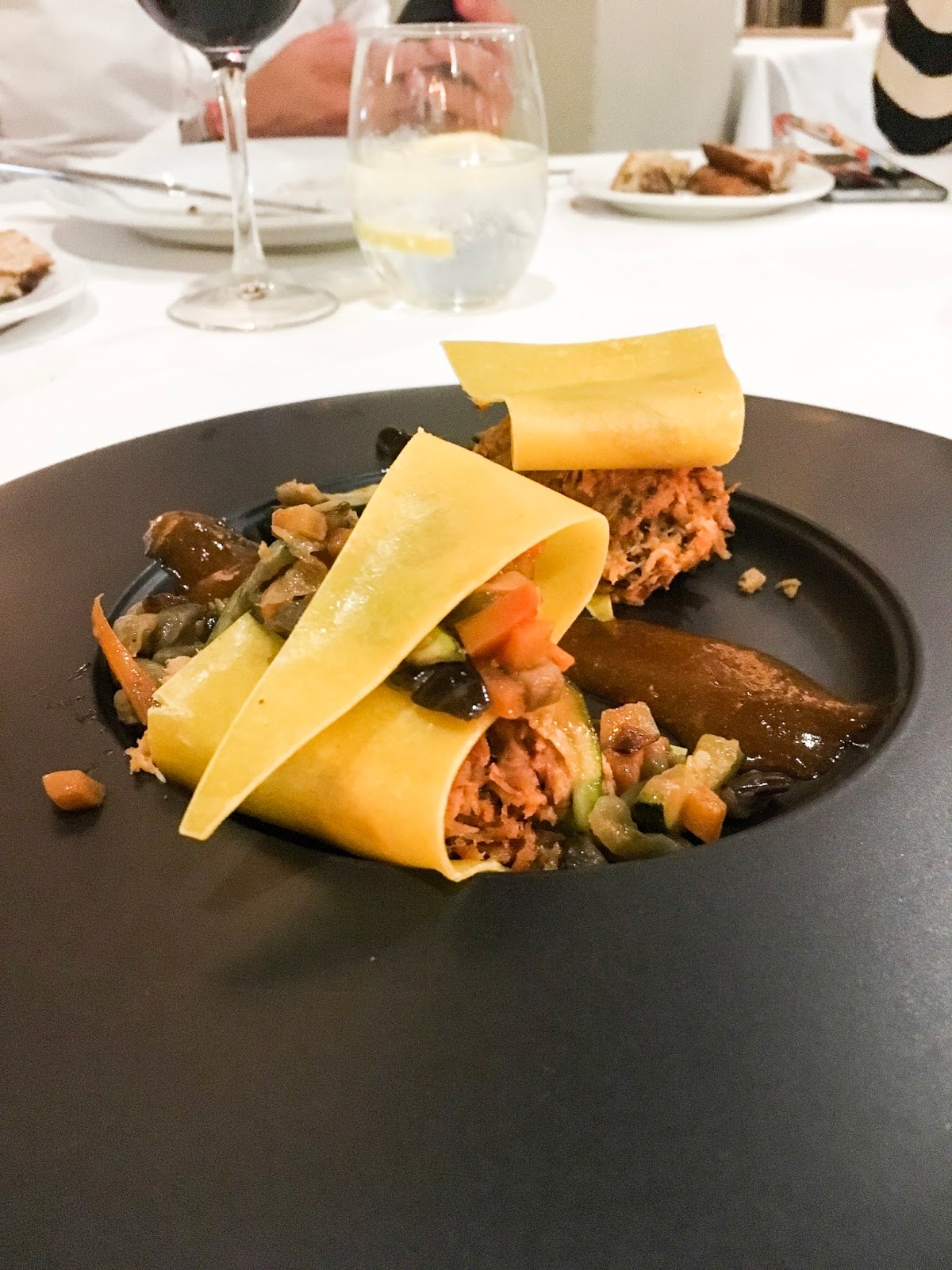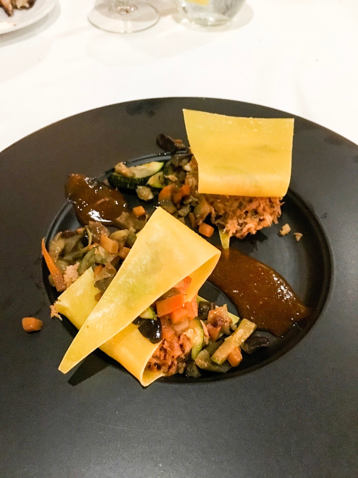 A los fogones Miguel López Castanier, quien fuera dueño de La Taberna de Liria, siempre buscando la originalidad y la máxima calidad en cada uno de sus platos. No tengo muy claro cómo definiría la carta de Ataclub, además de muy variada, pero está todo espectacular. Nosotros fuimos un grupo muy grande y nos decantamos por foie casero con brioche de cacao, lasagneta de faisán, vieiras