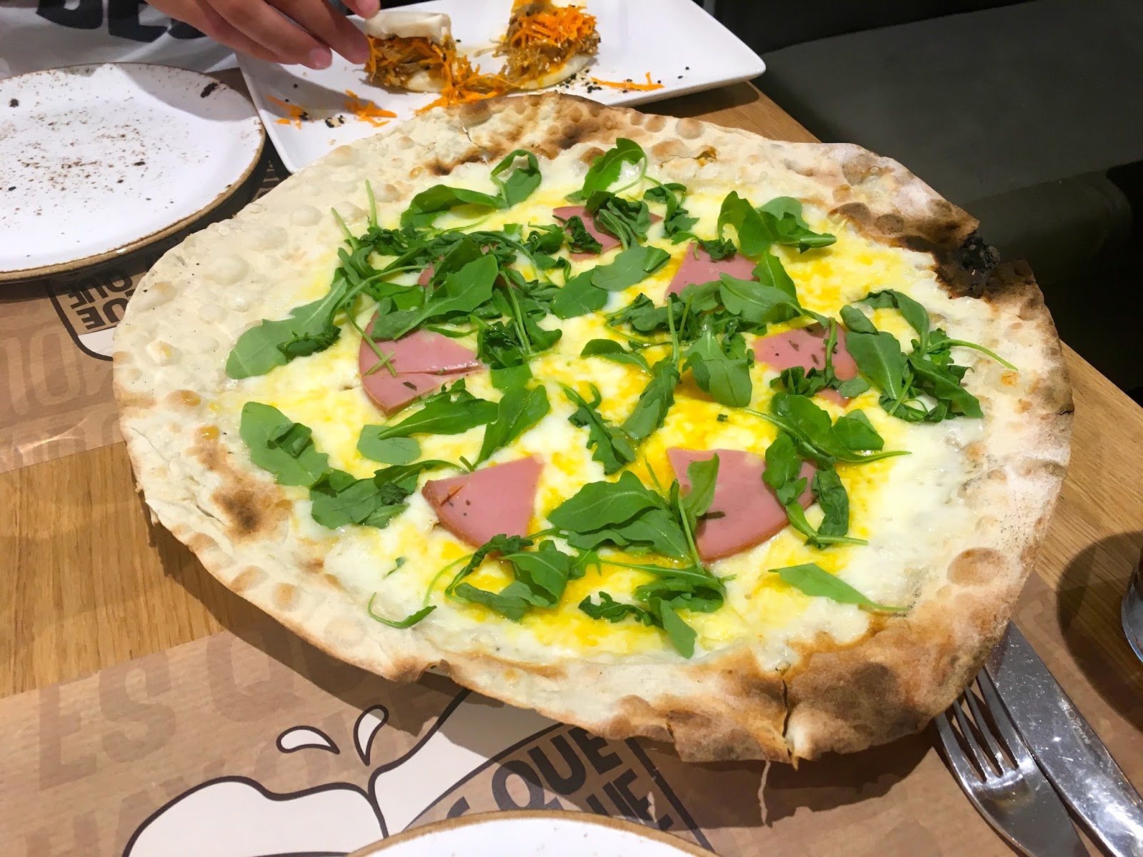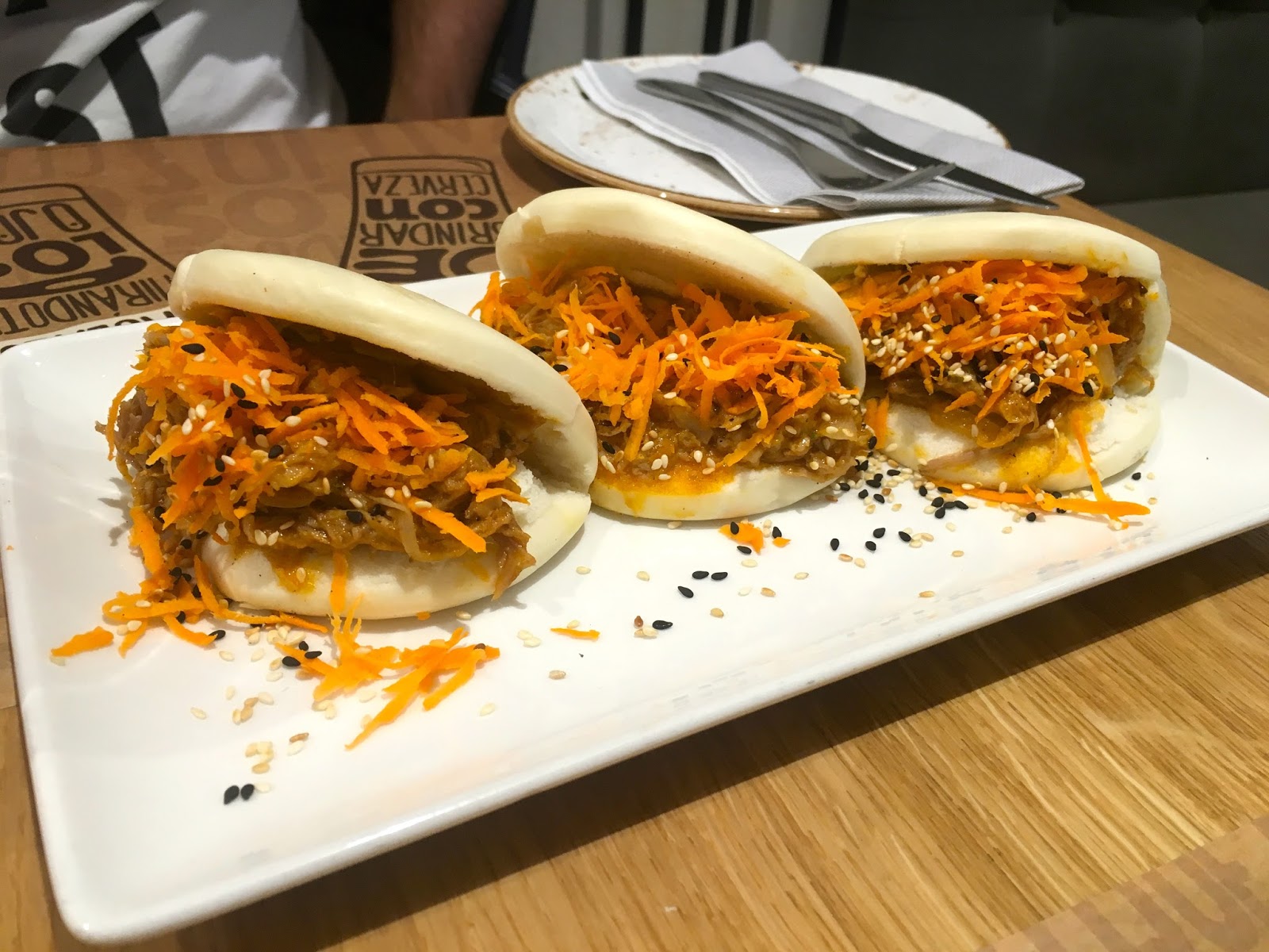 Pedimos todo para compartir: alitas BBQ, pizza bianca de Bologna, Baopulledpork y de postre, tarta “entre el Kinder Bueno y el Twix”. Sinceramente, todo me pareció buenísimo. La pizza, aunque parezca súper seca en las fotos, era muy jugosa y es lo que más os recomiendo. Nos gustó muchísimo. La tarta también tiene mención especial, pero hay que dejarse hueco. No pidáis todo lo que elegimos nosotros, que somos de muy buen comer y vais a reventar.
