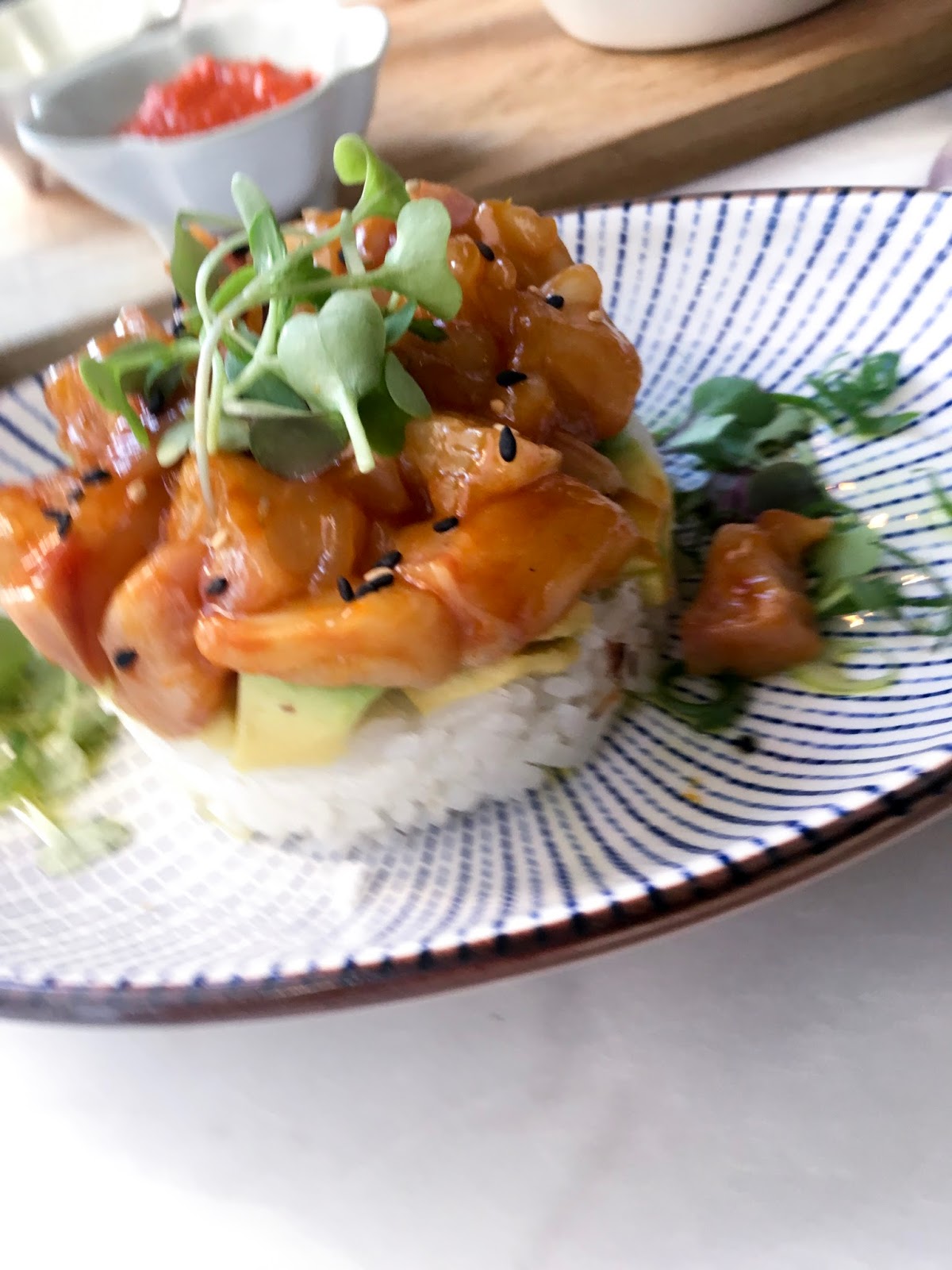 Lubitarta es tartar de lubina con maracuyá y miso dulce sobre arroz. Estaba espectacular. Puede que la ración fuera algo pequeña, pero lo bueno si breve dos veces bueno, y la salsa combinada con el arroz y la textura del pescado me dejaron muy buen sabor de boca.