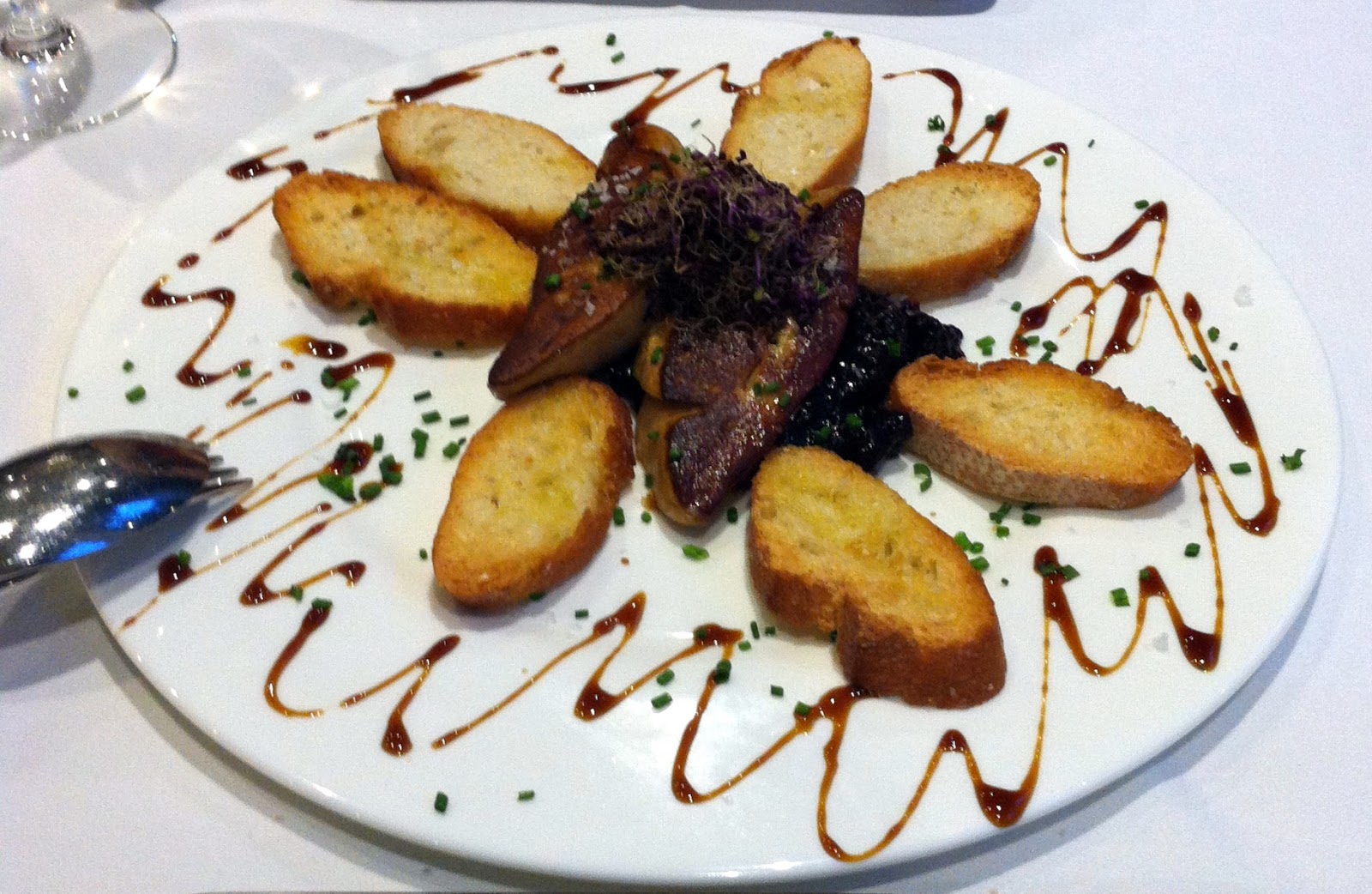 salmorejo andaluz, lingotes de foie sobre cebolla caramelizada,